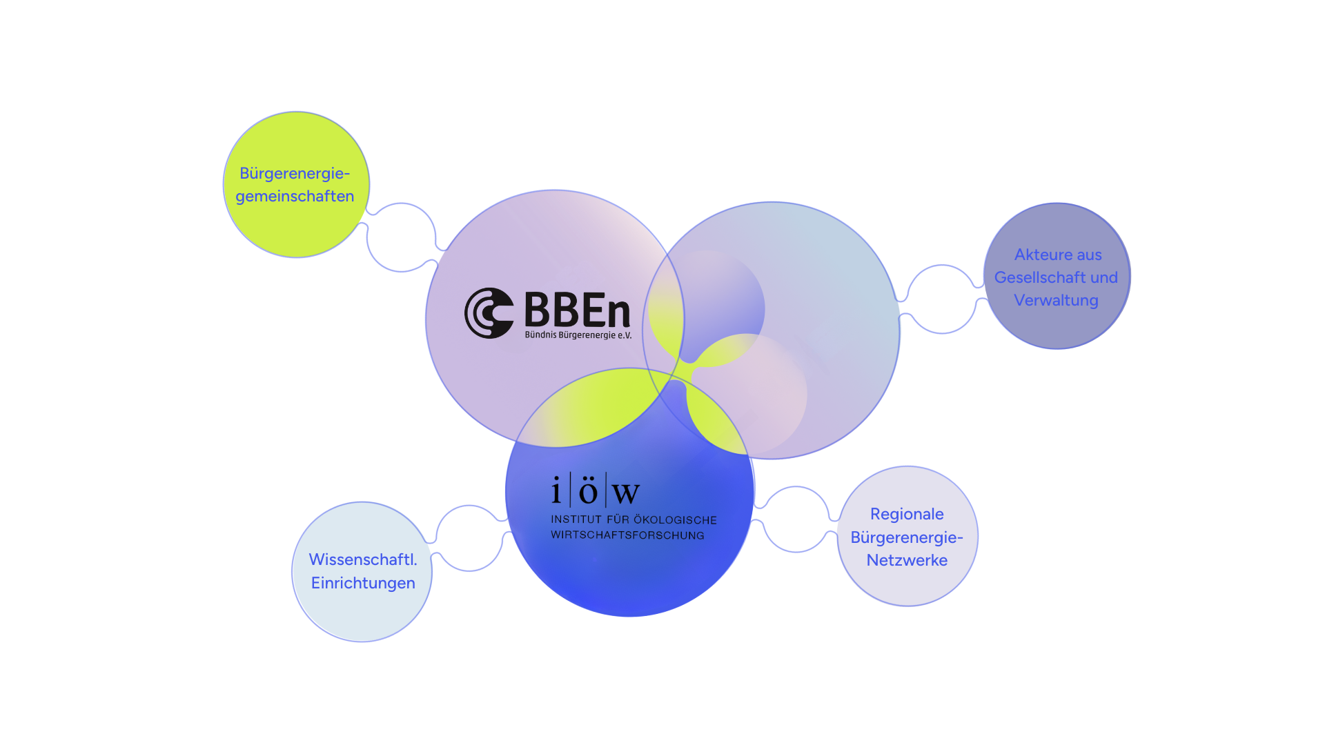 Das BBEn übernimmt das Projektmanagement, die Koordination der Community-Projekte sowie Öffentlichkeitsarbeit und Vernetzung über Konferenzen, Veranstaltungen und die Projektwebsite. Das IÖW bringt wissenschaftliche Expertise ein und führt Analysen zu Hemmnissen, Bedarfen und Innovationspotenzialen in der Bürgerenergie durch. Daraus entstehen Impulse für die Weiterentwicklung der Community, neue Forschungsfragen sowie Handlungsempfehlungen für die Politik. Gemeinsam entwickeln die Partner auch den Rahmen für Innovationsprojekte und stoßen deren Umsetzung an.